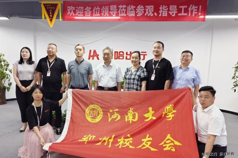 6月18日下午,河南大学郑州校友会在会长张占仓带领下来到位于郑州经济技术开发区的哈哈出行总部开展校友企业走访活动。执行会长兼秘书长李传荣、副会长仝保军,副秘书长杨振东、张子涵,理事董华坤等参加走访。哈哈出行创始人、董事长程幼龙,副总经理高玉锋等接待走访。