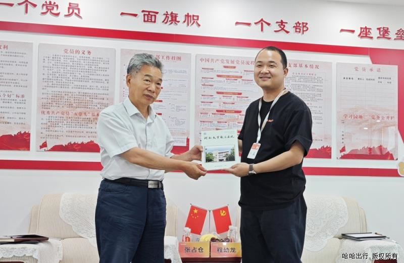 河南大学郑州校友会向程幼龙赠送河南大学110年校庆徽章、杂志《河南大学校友通讯》和图书《翰墨情缘——河南大学名人手迹》等,并吸纳他加入校友会。